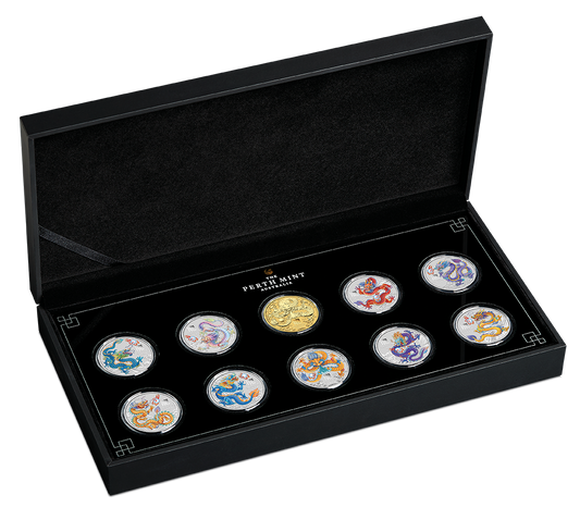 In Stock! 2024 Australia Lunar Dragon Colorized 10 x 1/2 oz Silver Coin Set