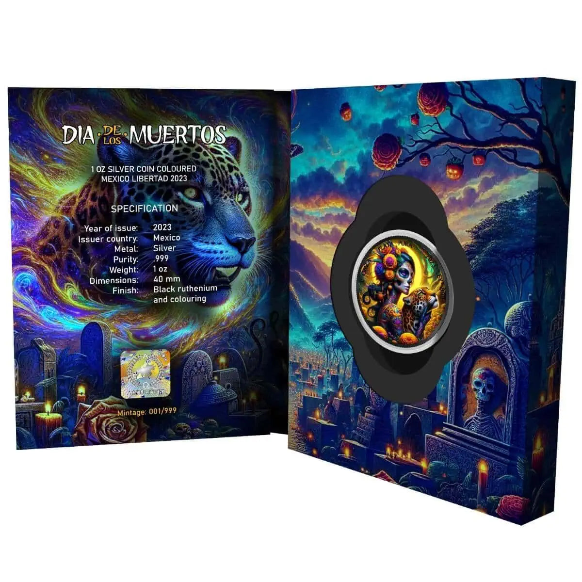 2023 Libertad 1 oz Dia De Los Muertos Colored with Black Ruthenium & includes Blister Pack with COA.