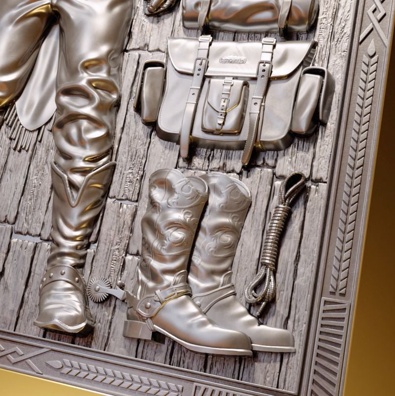 On the obverse, Garrett is depicted as a resolute figure, rendered with the stern determination for which he was known. Surrounding him are iconic elements of the Wild West: the weathered cowboy hat, representing the rugged independence of riders and ranchers; the lever-action rifle, symbolizing survival and law enforcement in the untamed frontier; and the sheriff’s star embodying authority and duty in the unpredictable 19th-century American Southwest. Bold and evocative, this coin offers collectors a powerful tribute to Garrett’s life and the enduring symbols of the Old West.