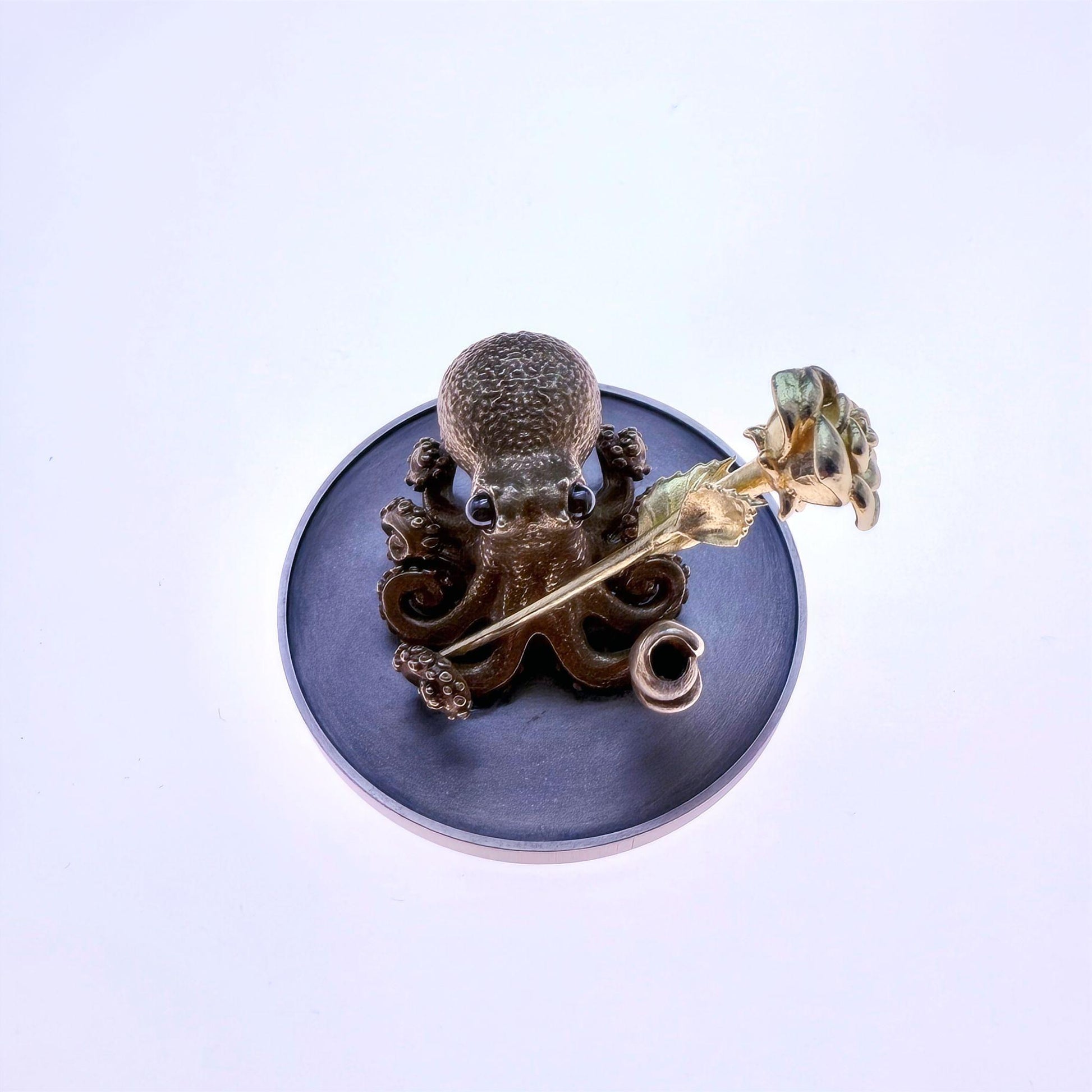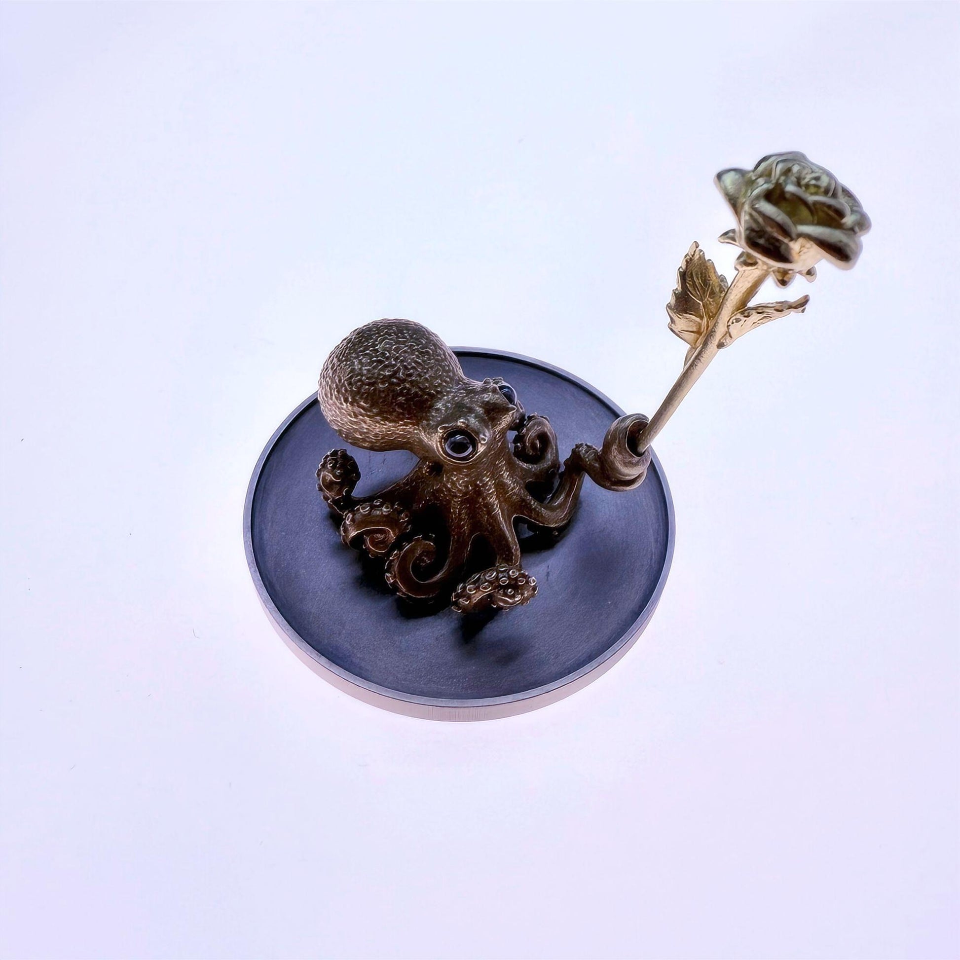 This coin features a 3D Octopus holding a rose. The Rose can be rotated.