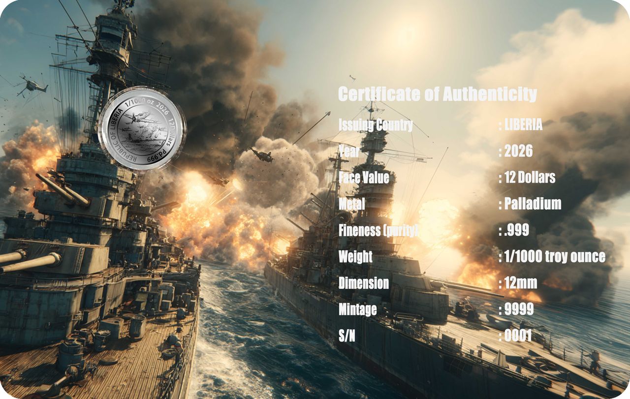 2026 Liberia Battle of Midway 1/1000 oz .999 Palladium Coin in Card