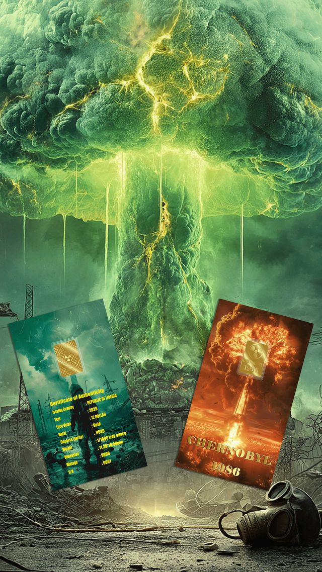 2026 Liberia Chernobyl 1/1000 oz Gold Coin in Card (12/26)