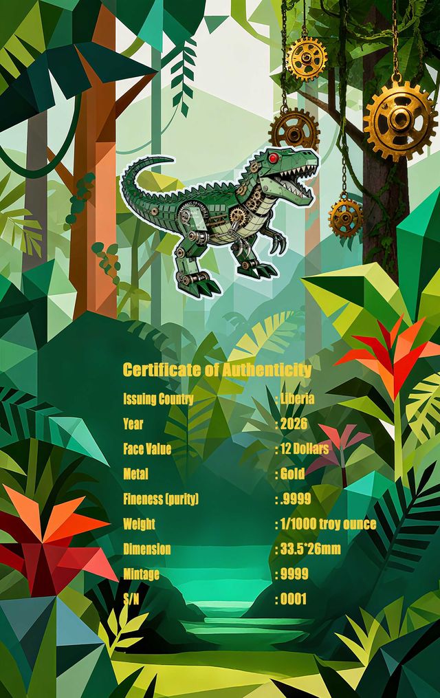 2026 Liberia Polygon Rex Shaped 1/1000 oz Gold Coin in Card (02/16)