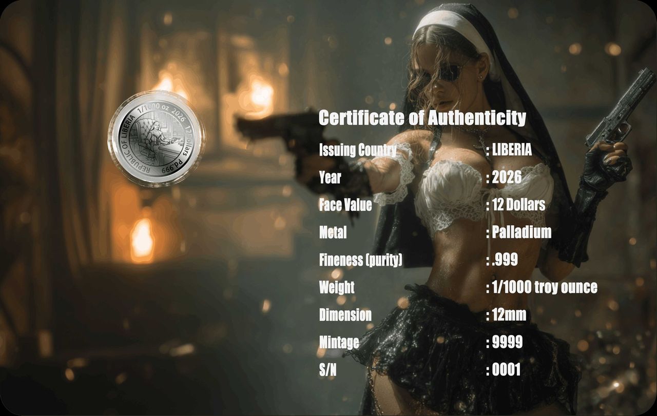 2026 Liberia Sis Belladonna 1/1000 oz Palladium Coin in Card (03/02)